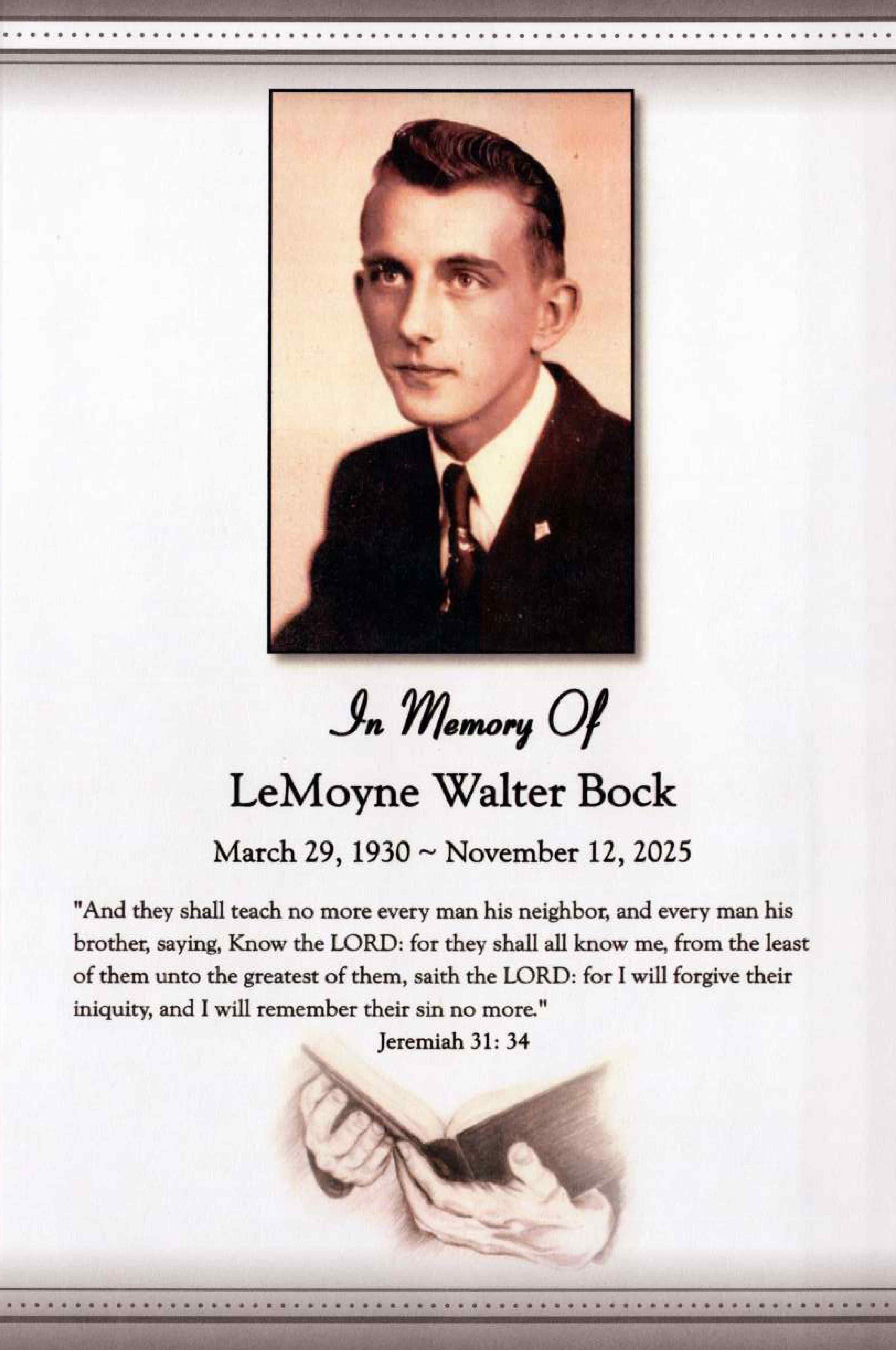 LeMoyne Walter Bock, age 95, of Wheaton, Minnesota passed away on November 12, 2025, at the Sanford Wheaton Medical Center.
