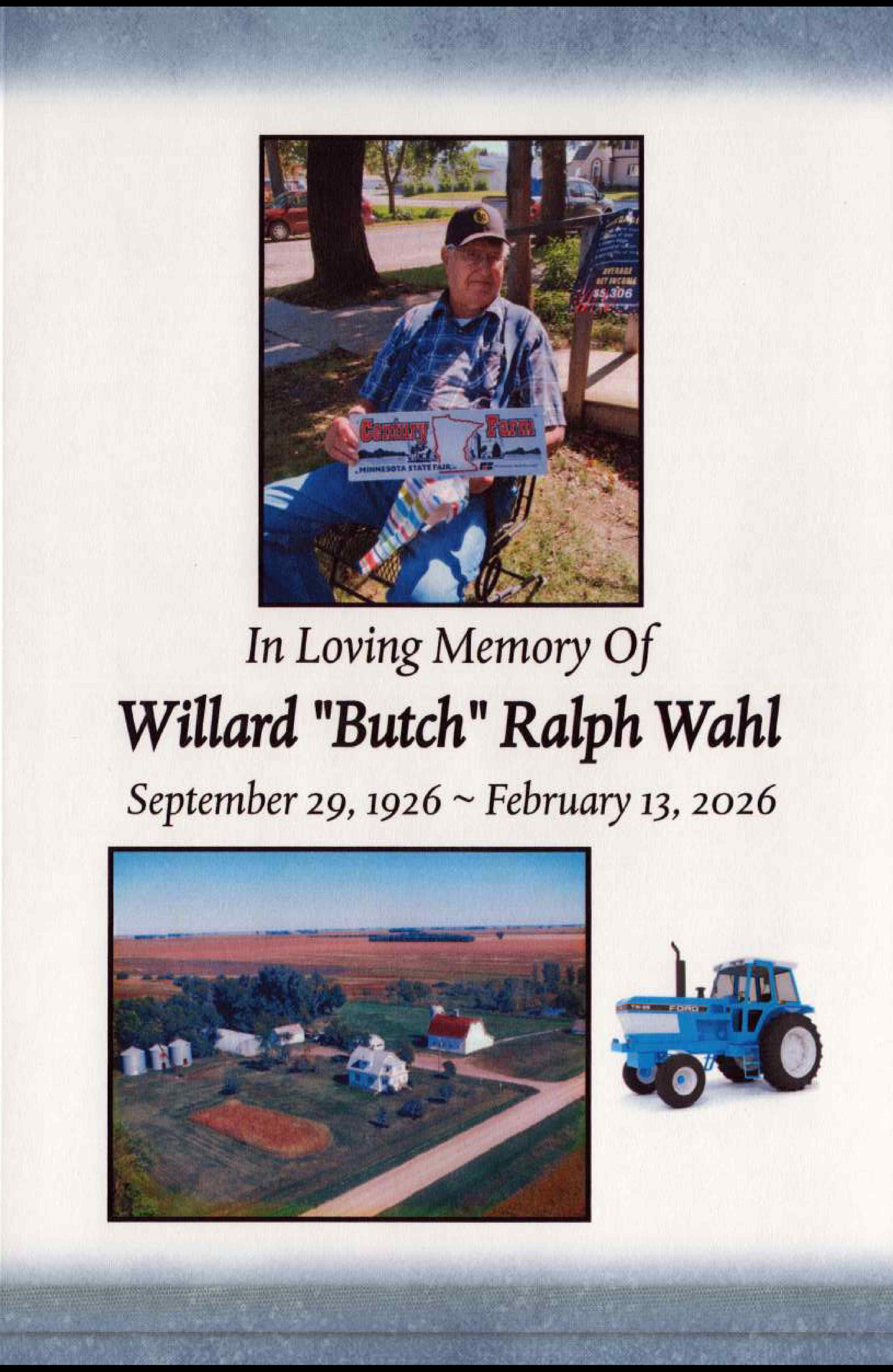 Willard “Butch” Wahl, age 99, of Wheaton, Minnesota passed away looking out his big window at home on February 13, 2026, surrounded by his family under hospice care.